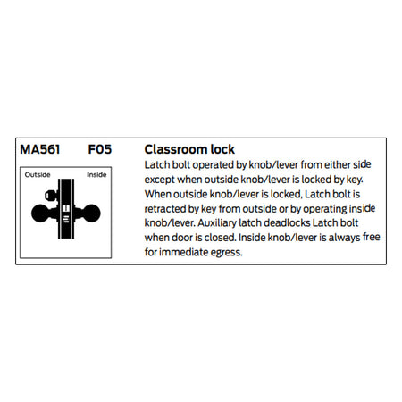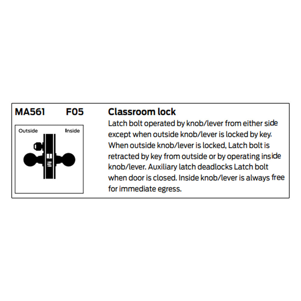TITLE TAG: Falcon MA561 Classroom Lock - Grade 1 Single Cylinder Mortise Lock