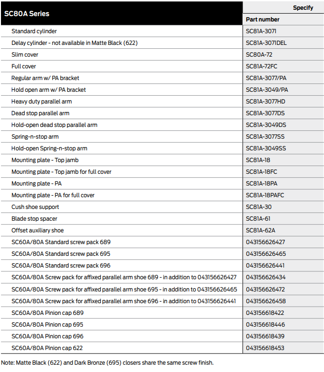 - The SC80A Series mounts hinge pull side, push side top jamb, push side parallel arm and hold open parallel arm. Visit the SC80A Series catalog pages for mounting details, arm options and accessories.