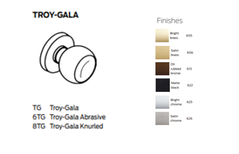 • Knobs and roses are wrought brass, bronze or stainless steel installed over steel or nonferrous reinforcing plates