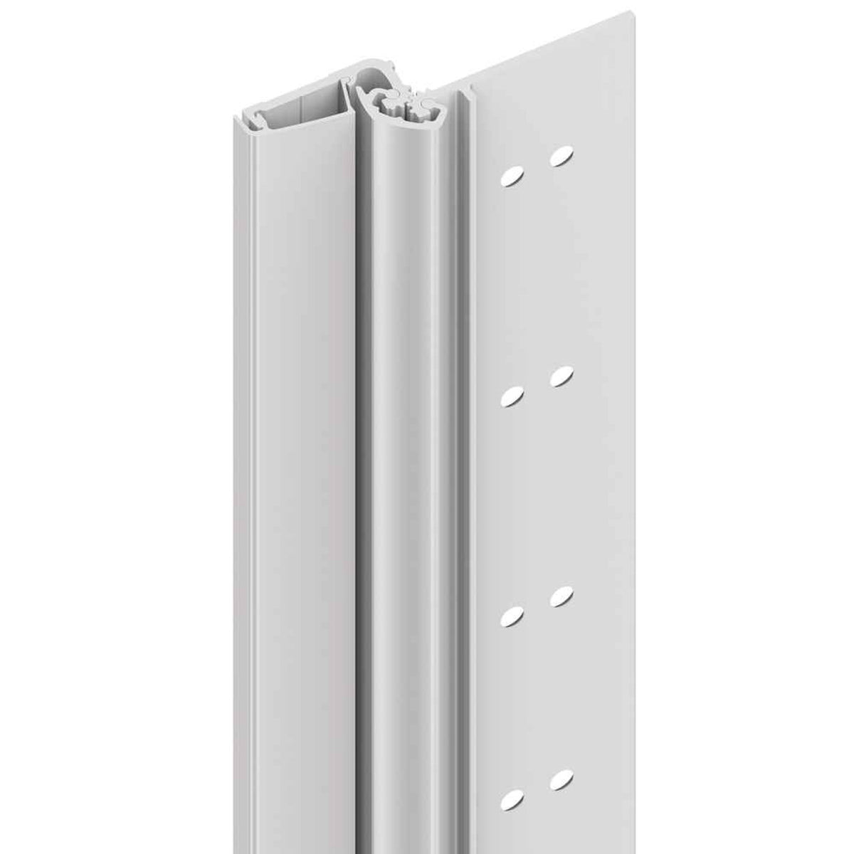 Geared continuous hinges are designed to last the life of a building by distributing the weight of a door along the entire length of its frame. The unique design reduces the high amount of stress normally associated at the top of the door and frame on butt hinge applications. Not only does this reduce hinge failure, but it also keeps a door in constant alignment, eliminating the chance of door sag. These characteristics make continuous hinges suitable for high-use and high-traffic doors. The geared continuous hinge has no pin. Instead, these hinges utilize a single gear section for the leaf and a separate gear section for the frame side of the door. The two are held in place by a full-length cover channel and rotate on a series of bearings. The design of a continuous hinge eliminates the spacing between the hinges, which helps prevent fingers from being pinched, making it a safer device than traditional hinges. These benefits result in higher efficiency and less maintenance, maximizing the value of a door opening investment.