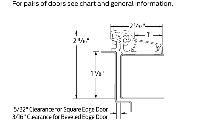 • For doors weighing up to 450 pounds without reinforcing, 600 pounds with reinforcing;