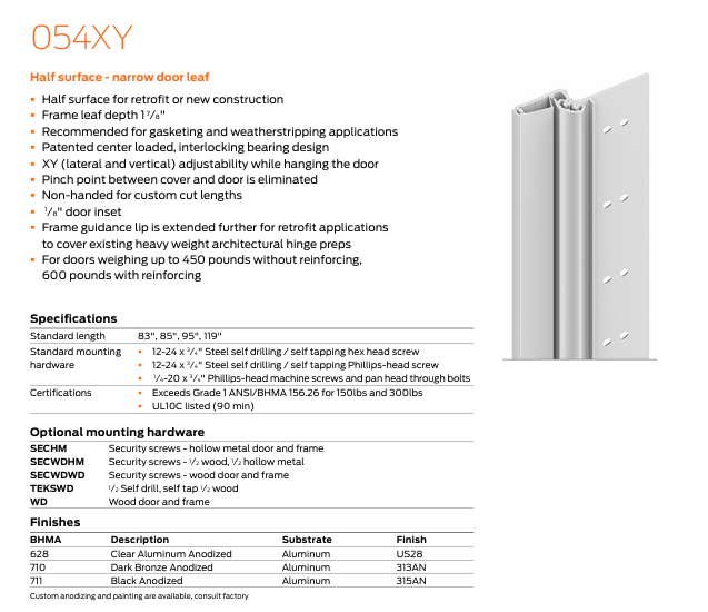 Ives geared continuous hinges can be furnished with the following options: