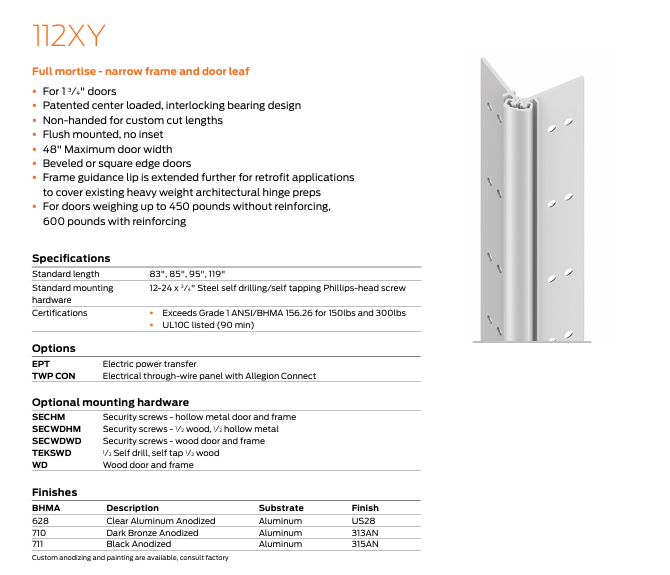 Ives geared continuous hinges can be furnished with the following options: