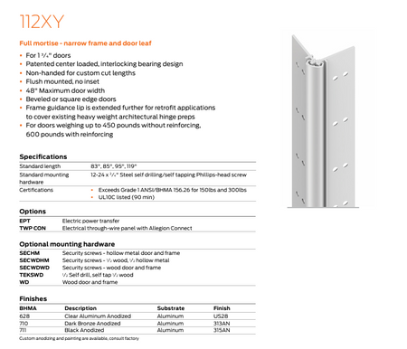112XY FULL MORTISE - NARROW FRAME AND DOOR LEAF