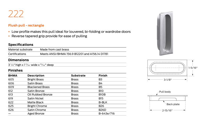 • Low profile makes this pull ideal for louvered, bi-folding, or wardrobe doors.