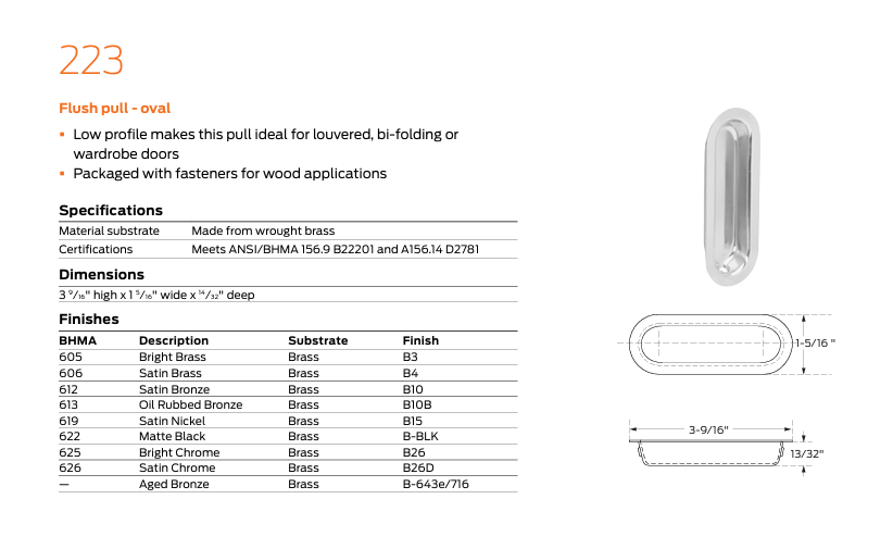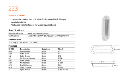 Ives pulls are offered in various designs, including oval, round and rectangular, and in various sizes and depths. They are also available in both wrought and cast materials. For specific product specifications and details, please view the Ives Full Line catalog.