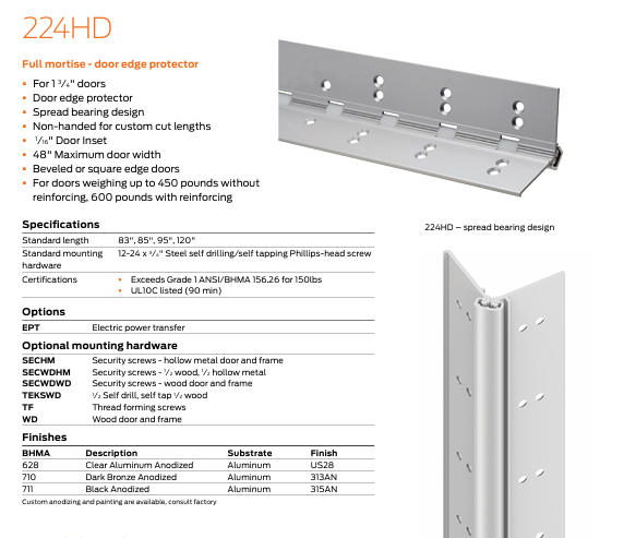 Ives geared continuous hinges can be furnished with the following options: