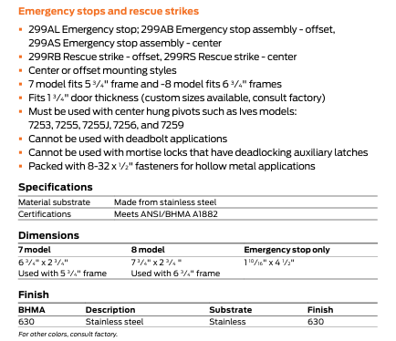 Ives also offers rescue hardware designed to address a blocked doorway caused by an incapacitated patient, which is a problem often encountered by healthcare professionals. Used in conjunction with center hung pivots, rescue hardware allows a bi-directional door swing in emergency situations.