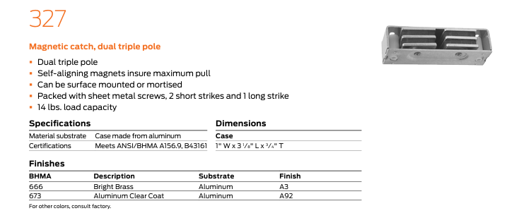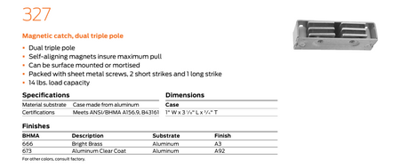 327 MAGNETIC CATCH, DUAL TRIPLE POLE