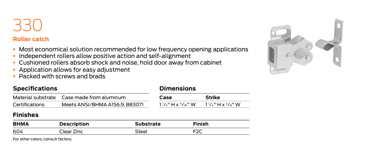 Ives has multiple roller latches and catches that assure a door will stay closed when not in use. These accessories will not keep a door secure and are not meant for security applications; they only help keep a door closed. Ives also offers a variety of surface bolts and door guards to provide an additional security level.