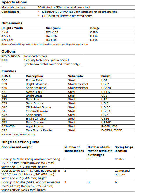 Maximum labeled door size - 3'0" wide x 7'0" x 1 3⁄4" thick as set in NFPA #80