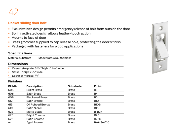 • Exclusive Ives design permits emergency release of the bolt from outside the door.