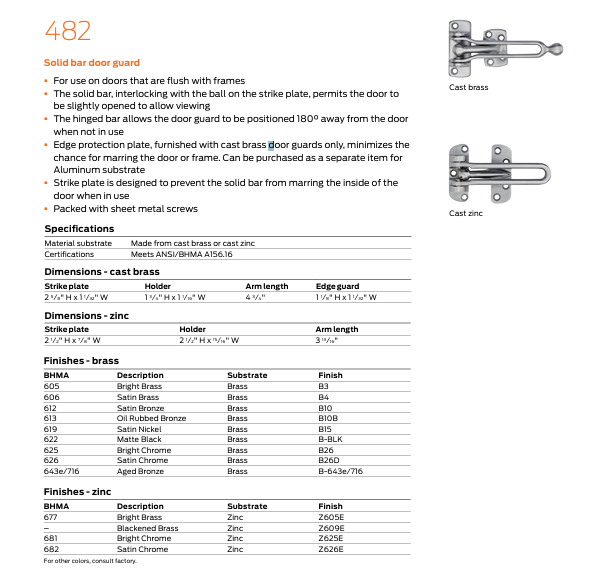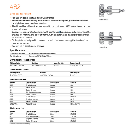 - Edge protection plate, furnished with cast brass door guards only, minimizes the chance of marring the door or frame. Can be purchased as a separate item for the Aluminum substrate;