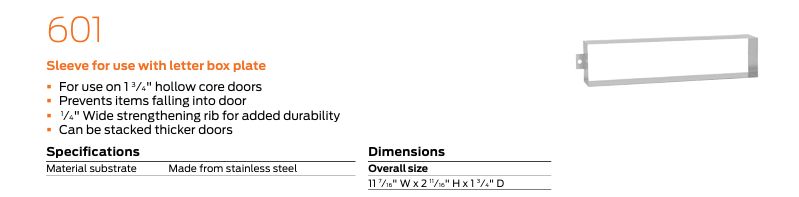 601 SLEEVE FOR USE WITH LETTER BOX PLATE