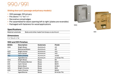 Flush pulls help maximize the space-saving benefits derived from installing sliding and pocket doors. The flush pull line has high-quality pulls with upscale appearances that improve the look and feel of an interior sliding door or pocket door design. Whether standard or decorative flush pulls are needed, Ives offers various finishes, shapes, and sizes for any application.