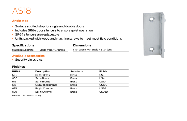 Ives has multiple roller latches and catches that assure a door will stay closed when not in use. These accessories will not keep a door secure and are not meant for security applications; they only help keep a door closed. Ives also offers a variety of surface bolts and door guards to provide an additional security level.