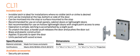 Ives CL11 INVISIBLE LATCH