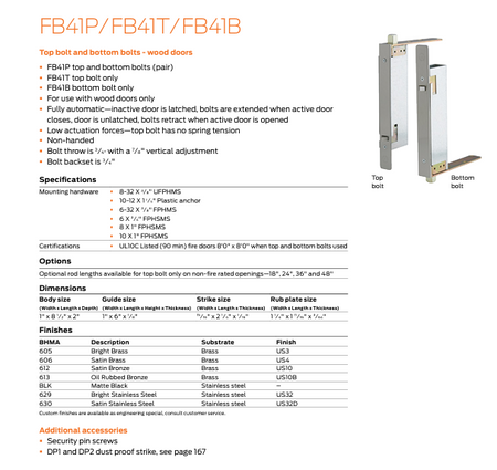 - Flush bolts come in many BHMA standard finishes