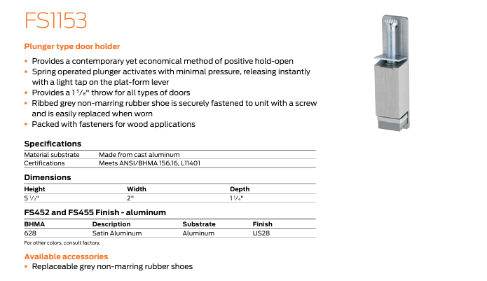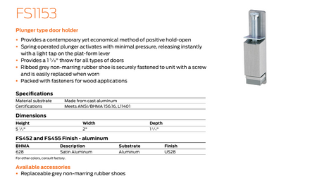 FS1153 PLUNGER TYPE DOOR HOLDER