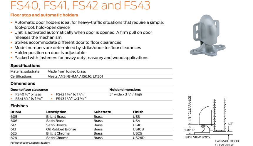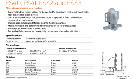 FS40, FS41, FS42, FS43 FLOOR STOP & AUTOMATIC HOLDER