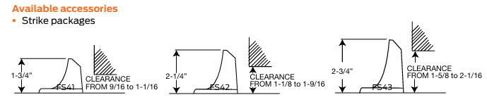 - Strikes accommodate different door-to-floor clearances;