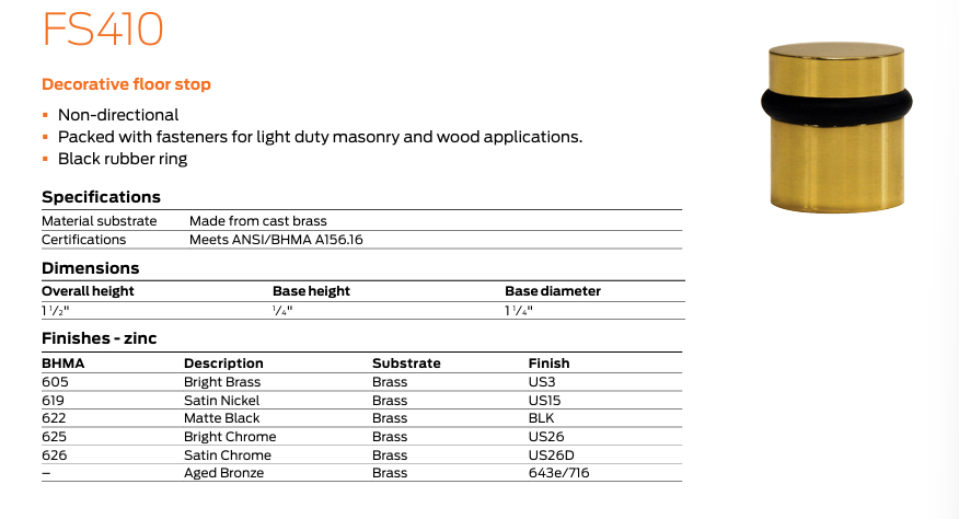 With a full line of wall bumpers, wall holders, kick down holders and hinge pin stops, Ives products are designed to ensure that doors will not slam into the wall. These accessories are typically found on doors without an overhead stop or holder.
