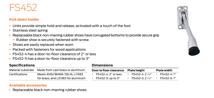 - FS452-4 has a door-to-floor clearance of 2" or less;