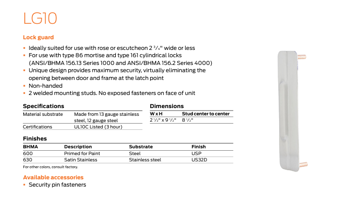 The lock guards are available in many finishes. Please refer to the Ives Full Line Catalog for specific product finish availability