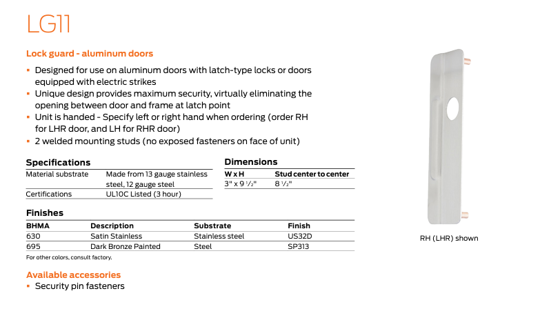 LG11 LOCK GUARD - ALUMINUM DOORS