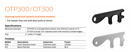 - Refer to the data sheet for available Brass or Stainless Steel substrates for each hands-free pull offering