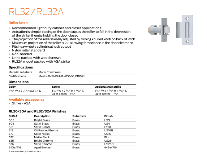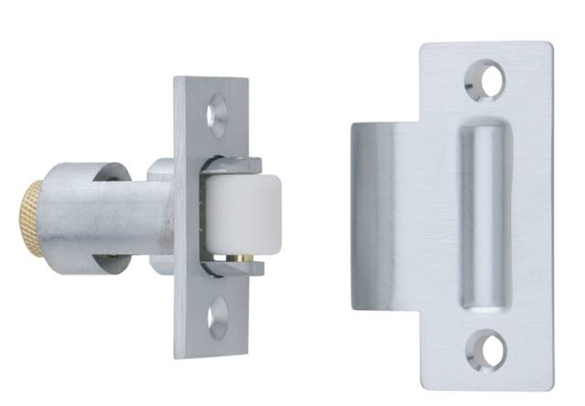 Ives has multiple roller latches and catches that assure a door will stay closed when not in use. These accessories will not keep a door secure and are not meant for security applications; they only help keep a door closed. Ives also offers a variety of surface bolts and door guards to provide an additional security level.