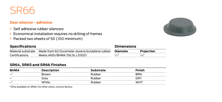 - Silencers: Silencers are installed on metal frames featuring pneumatic design that, once installed, form an air pocket to absorb shock and reduce the noise of the door closing.