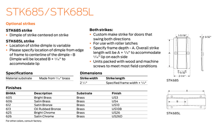 - Specify frame depth - A. Overall strike length will be A + 3/8" to accommodate 3/16" lip on each side;