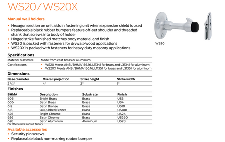 With a full line of wall bumpers, wall holders, kick down holders and hinge pin stops, Ives products are designed to ensure that doors will not slam into the wall. These accessories are typically found on doors without an overhead stop or holder.