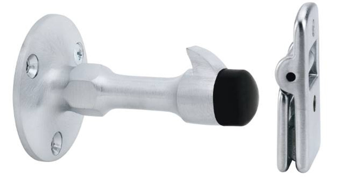 - Wall bumpers/stops: Wall bumpers and stops are mounted to the wall and stop the door from opening too far and hitting the wall or another door.
