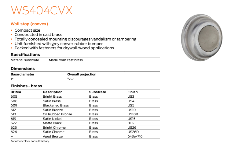 With a full line of wall bumpers, wall holders, kick down holders and hinge pin stops, Ives products are designed to ensure that doors will not slam into the wall. These accessories are typically found on doors without an overhead stop or holder.