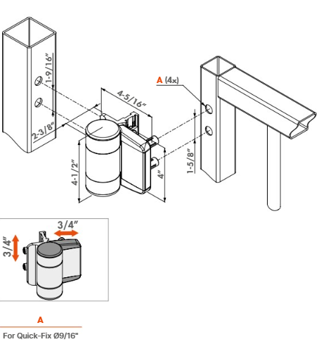 The Dino hinge is a double bearing hinge in an aluminum housing. The stainless steel bearings guarantee a smooth opening and closing of the gate. Easy to install with Quick-Fix.