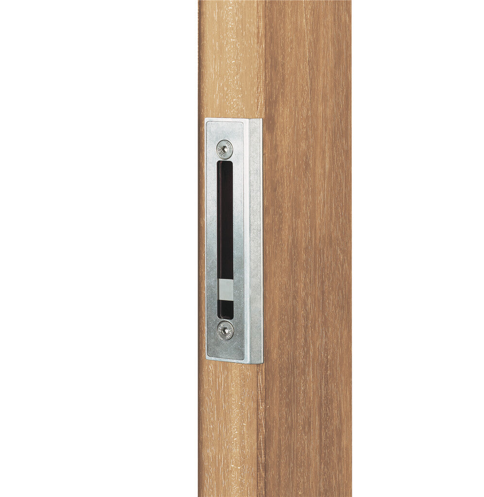 Aluminum keep for our Hybrid Mortise locks. This unique keep is left and right hand reversible and comes with an adjustable stop plate that fits 1-1/2" to 2-1/2" gate profiles. When used in combination with the Hybrid lock this keep ensures strong gate locking while preventing the gate from being pried open as the dead bolt's "hook" locks into the keep's anchoring plate. This model comes with wood screws for installation on wooden posts. Latch gap: 7/8"