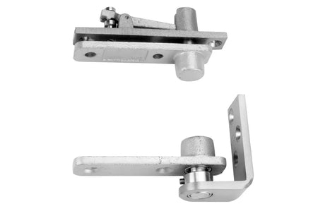 The EP-5J steel jamb mount center hung pivot set is used in conjunction with CSS-9 Combination Strike and Stops and DS-6 Emergency Door Stops and is used for full-size doors where mounting a bottom pivot on the floor is not possible or desirable. It's recommended for installations on average frequency doors in public buildings.