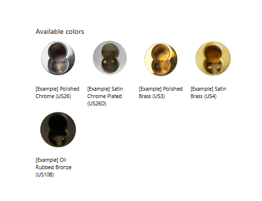 - US26, US26D, US3, US4 or US10B finish. See finish chart.