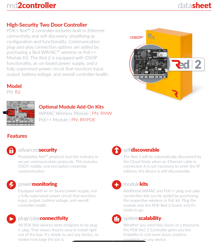 PDK’s RedTM 2 controller includes built-in Ethernet
