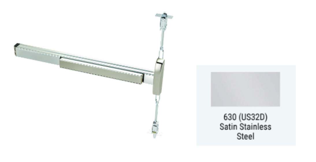 | ELECTRIFIED OPTIONS: | Motorized Latch Retraction Request to Exit/Signal Switch Alarmed Exit Latch Bolt Monitor ISMC Connectors Delayed Egress |