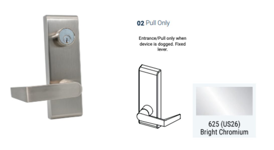 Discover the robust 6W Exit Device Trim, designed for 6300 devices. With six lever styles and five functions, including electric locking, it offers versatility for various security needs. Ideal for wide stile devices, it provides a substantial aesthetic appeal or retrofitting while covering existing holes. Note: Not compatible with 6400 narrow stile devices. Contact a sales representative to elevate security with PDQ’s durable and versatile 6W Exit Device Trim for your commercial spaces.