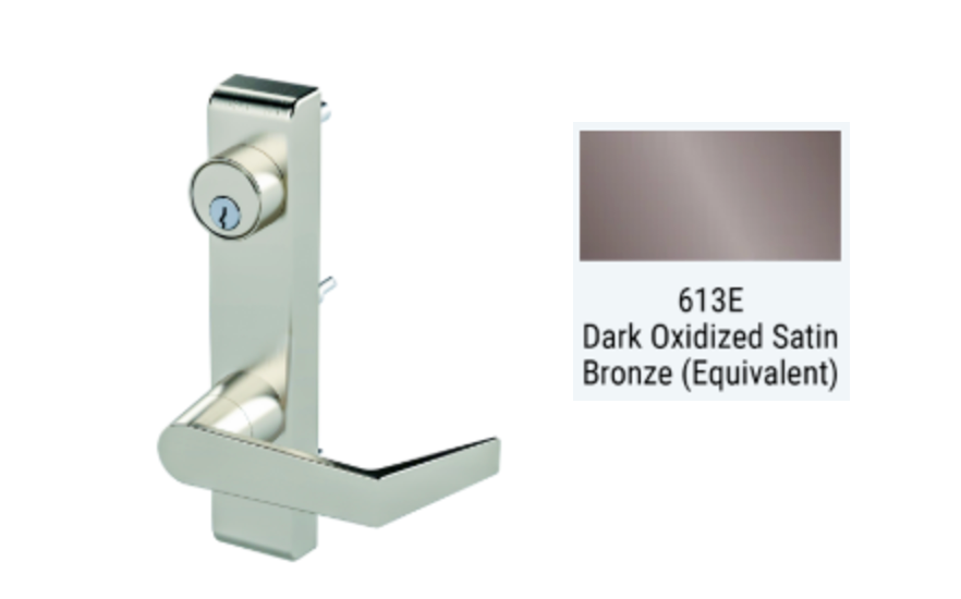 Introducing the 6NM Exit Device Trim, meticulously designed for 6300 or 6400 devices. Offering versatility with 6 lever styles and 6 functions, it perfectly complements narrow stile devices or wide stile devices when a sleeker appearance is preferred. Elevate security with this narrow profile escutcheon, blending style and functionality seamlessly. Ideal for various applications where a refined aesthetic meets uncompromised performance. Connect with a sales rep to unlock a world of possibilities with the 6NM Exit Device Trim, enhancing both security and design in equal measure.