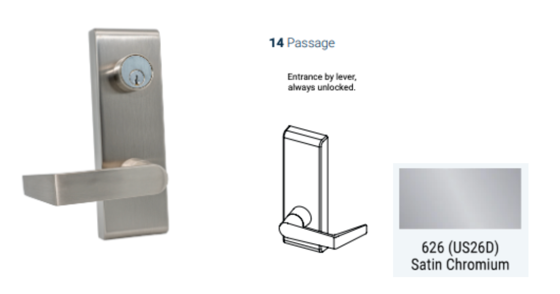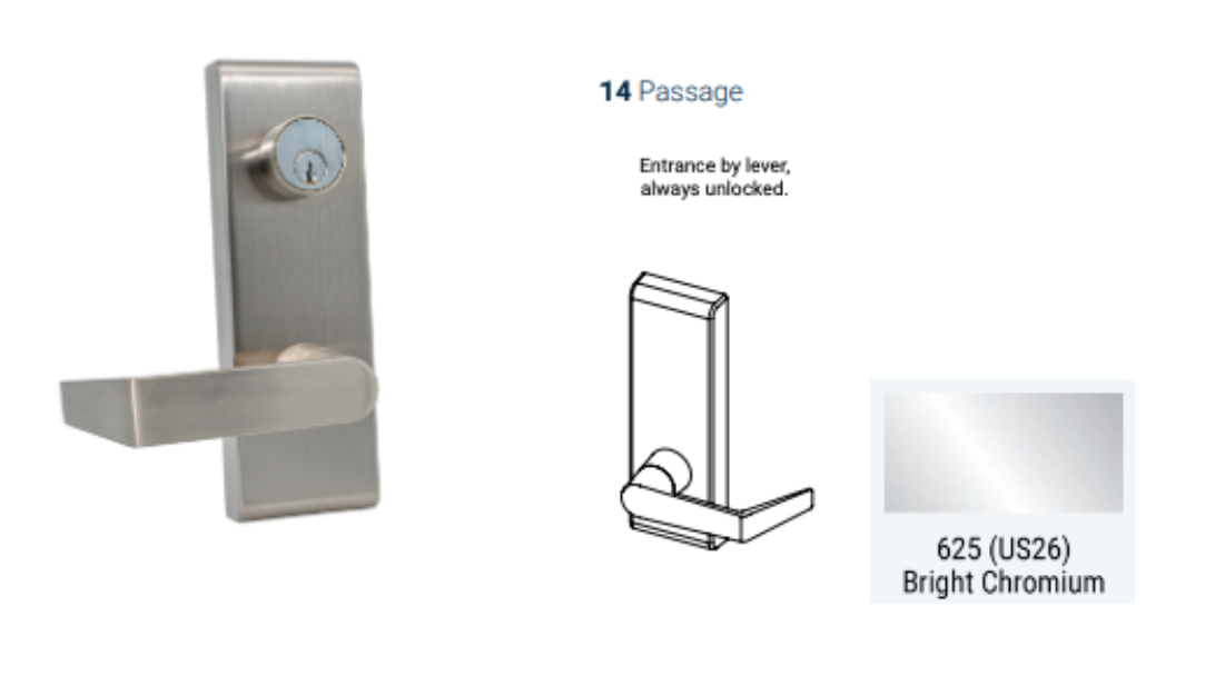 • Choose from 7 finishes: 605(US3), 606(US4), 613(US10B), 622(US19), 625(US26), 626(US26D), 630(US32D)