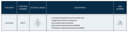• The mortise lock complies with ADA and ICC/ANSI 117.1 accessibility standards, which ensures inclusivity and usability in all buildings
