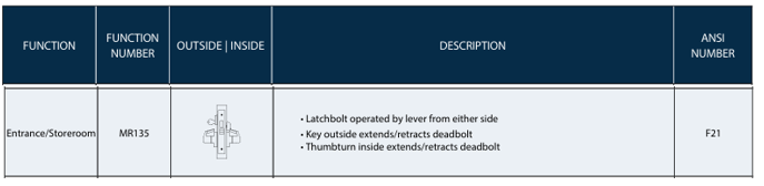 PDQ F Series - MR135 Entrance/Storeroom Function Mortise Lock