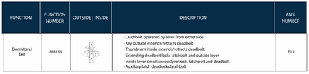 PDQ F Series - MR136 Dormitory/Exit Function Mortise Lock