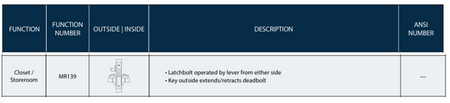 PDQ F Series - MR139 Closet/Storeroom Function Mortise Lock
