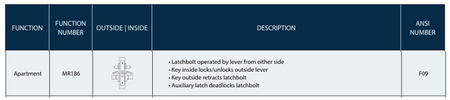 PDQ F Series - MR186 Apartment Function Mortise Lock